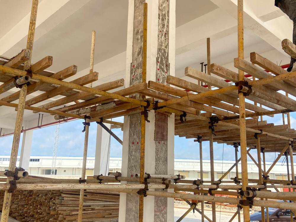 3. 新增柱的施工:新增柱的施工相對復雜,需確保柱腳與基礎或樓板的牢固連接。采用植筋技術時,需在基礎或樓板預定位置鉆孔,植入多根鋼筋形成柱腳鋼筋籠,再澆筑混凝土形成柱體。此過程中,需特別注意植筋位置的準確性、鋼筋籠的穩固性及混凝土澆筑的密實度,以確保新增柱的承載能力和穩定性。
