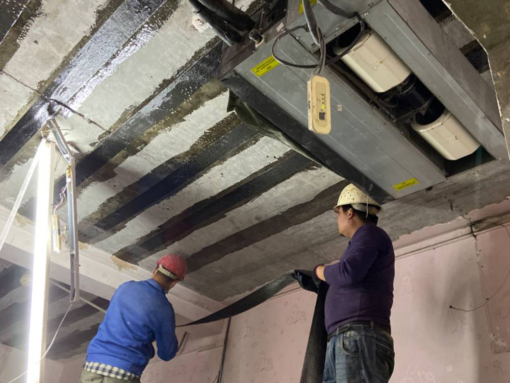 加固承重構(gòu)件:對承重梁、柱進(jìn)行包鋼、粘鋼、碳纖維布加固等處理,提高其承載能力。施工時應(yīng)嚴(yán)格控制材料質(zhì)量,確保加固效果。